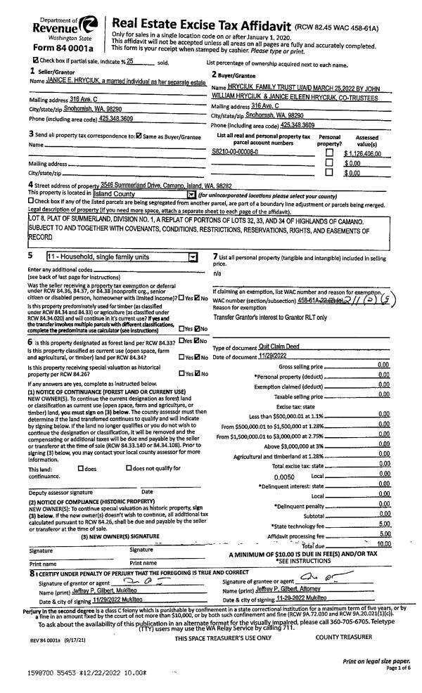 | 4 | 11/29/2022 | QCD | Quit Claim Deed | HRYCIUK, JANICE E | HRYCIUK FAMILY TRUST | | | $0.00 | 55453 | 4555068 |