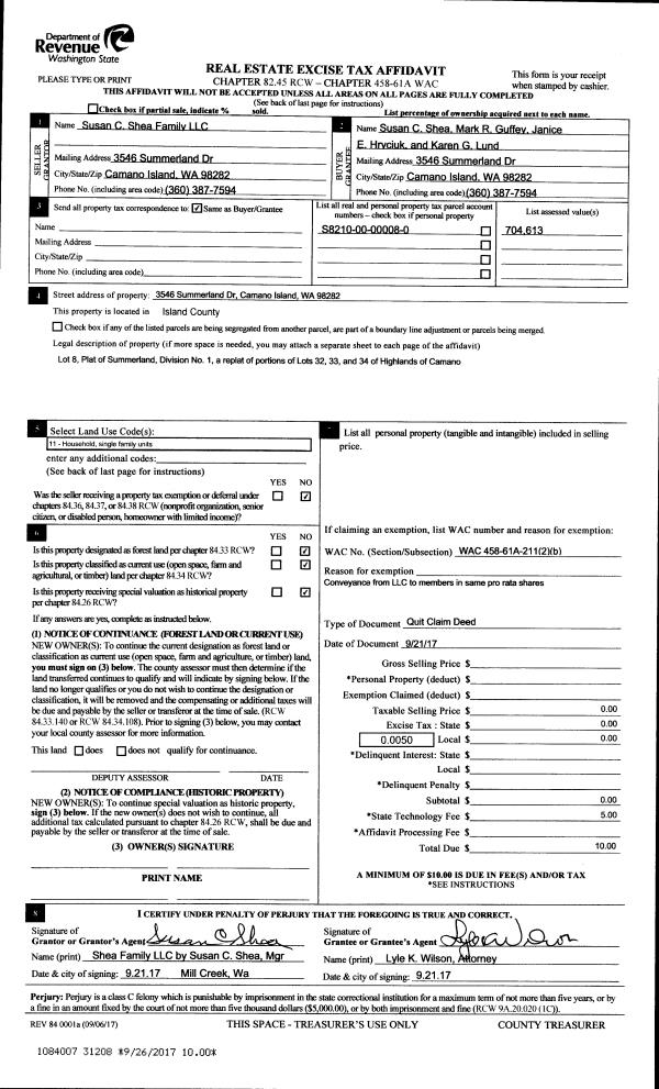 | 5 | 09/21/2017 | QCD | Quit Claim Deed | SUSAN C SHEA FAMILY LLC | SHEA, SUSAN C | | | $0.00 | 31208 | 4431320 |