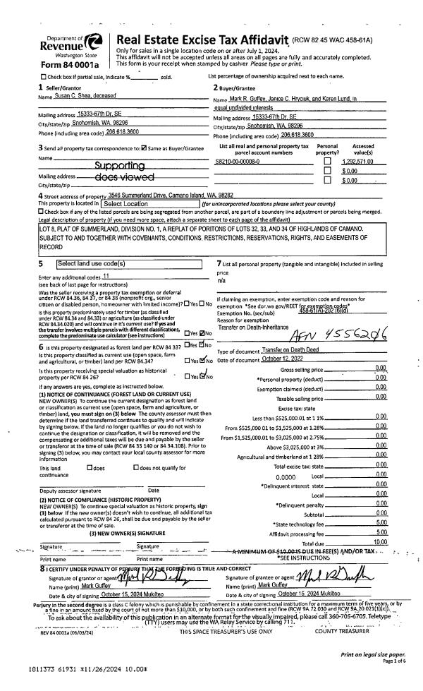 | 2 | 10/12/2022 | TOD | Transfer On Death Deed | SHEA, SUSAN C | GUFFEY, MARK R | | | $0.00 | 61931 | 4556206 |