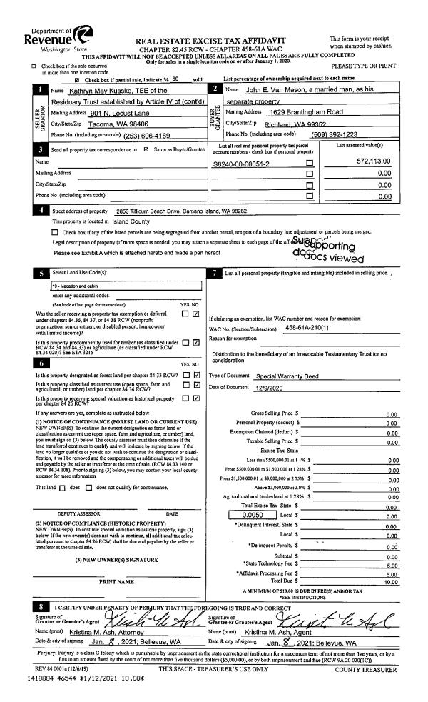 | 2 | 12/09/2020 | SPWARDEED | Special Warranty Deed | VAN MASON, EDWARD J | VAN MASON, JOHN E | | | $0.00 | 46544 | 4507924 |
