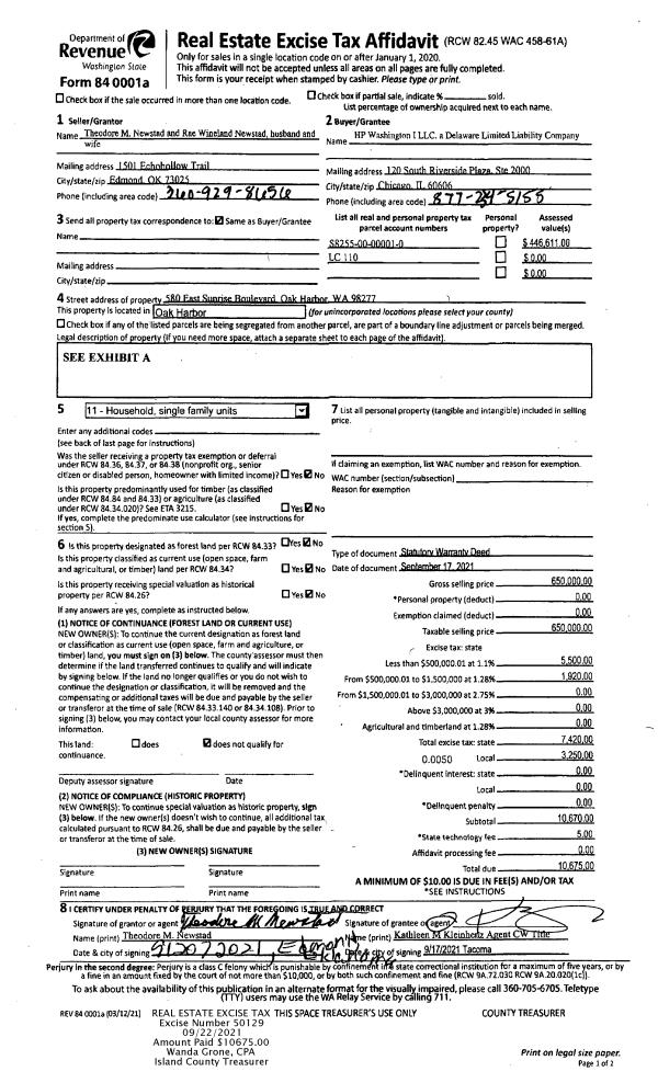 | 1 | 09/17/2021 | WD | Warranty Deed | NEWSTAD, THEODORE M | HP WASHINGTON I, LLC | | | $650,000.00 | 50129 | 4529666 |