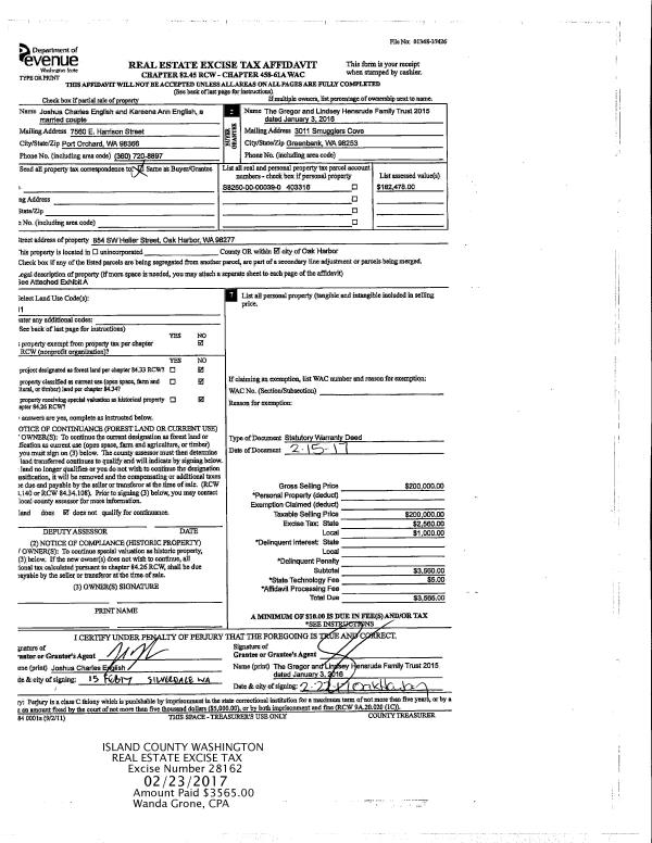 | 4 | 02/15/2017 | WD | Warranty Deed | ENGLISH, JOSHUA CHARLES | HENSRUDE TRUSTEE, GREGOR ALAN | | | $200,000.00 | 28162 | 4417556 |