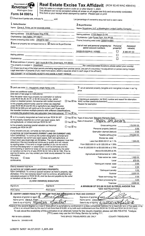 | 2 | 04/24/2023 | WD | Warranty Deed | POTTER, ELENA A | SOUNDVIEW, LLC | | | $175,000.00 | 56507 | 4559235 |