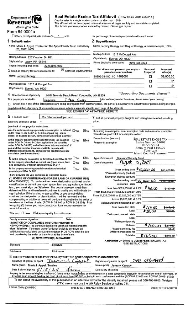 | 1 | 08/15/2024 | WD | Warranty Deed | APPEL, JAMES W | KENAGY, JEREMY | | | $10,000.00 | 61002 | 4575987 |
