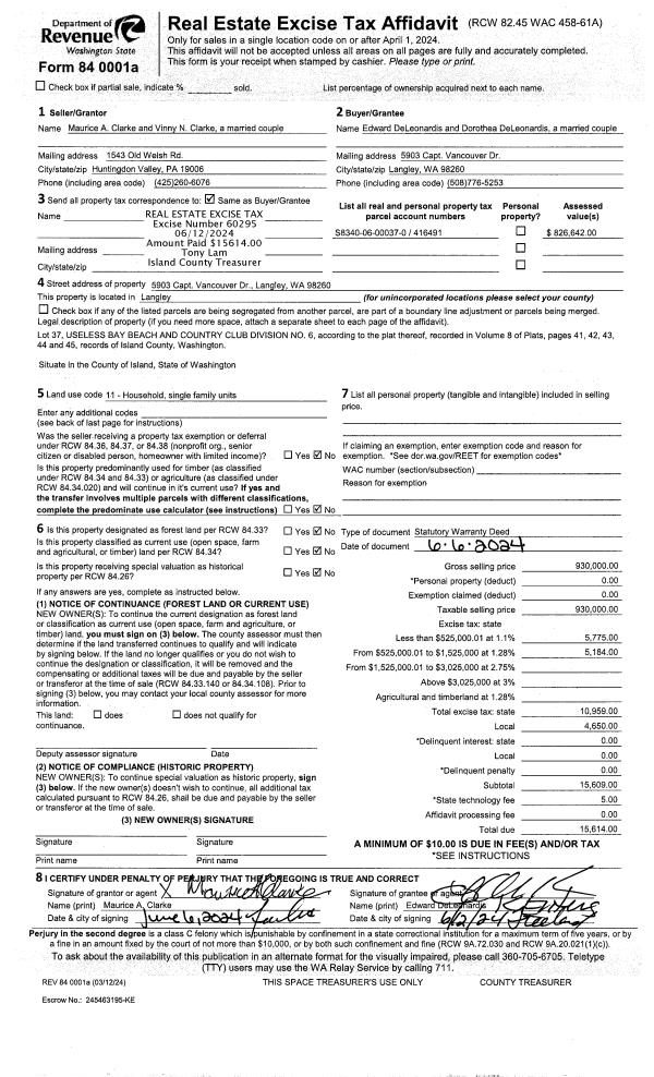 | Mailing Address: | DOROTHEA DELEONARDIS 5903 CAPT VANCOUVER DR LANGLEY, WA 98260 | % Ownership: | 100.0000000000% |