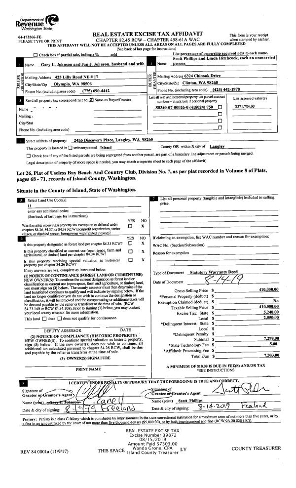 | 1 | 08/14/2019 | WD | Warranty Deed | JOHNSON, GARY L & JAN J | PHILLIPS, SCOTT | | | $410,000.00 | 39872 | 4469429 |