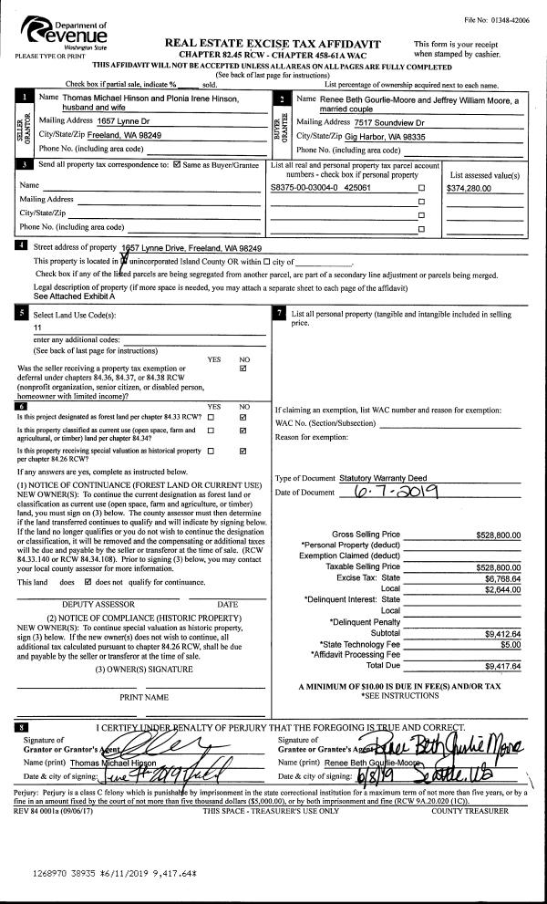 | 1 | 06/07/2019 | WD | Warranty Deed | HINSON, THOMAS MICHAEL | GOURLIE-MOORE, RENEE BETH | | | $528,800.00 | 38935 | 4465231 |