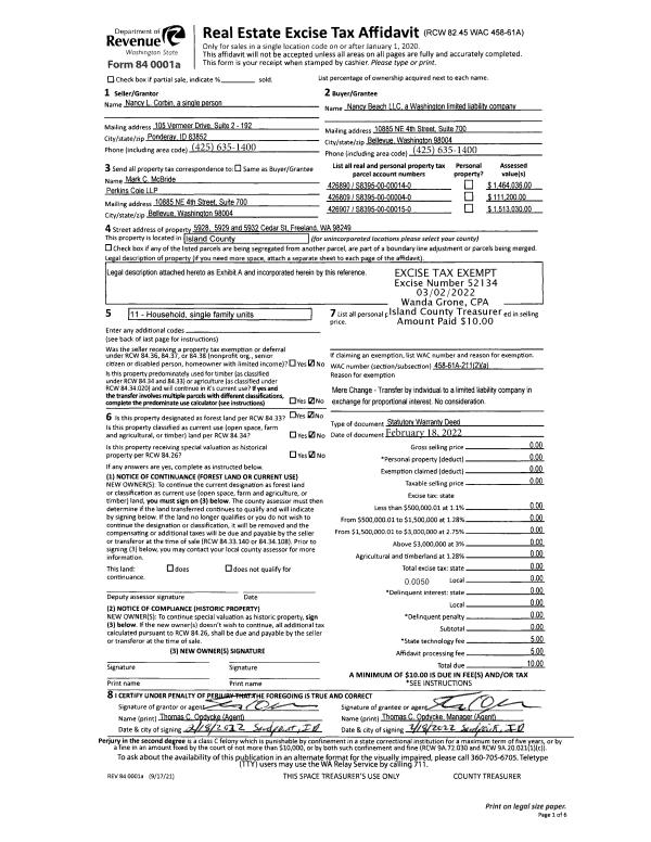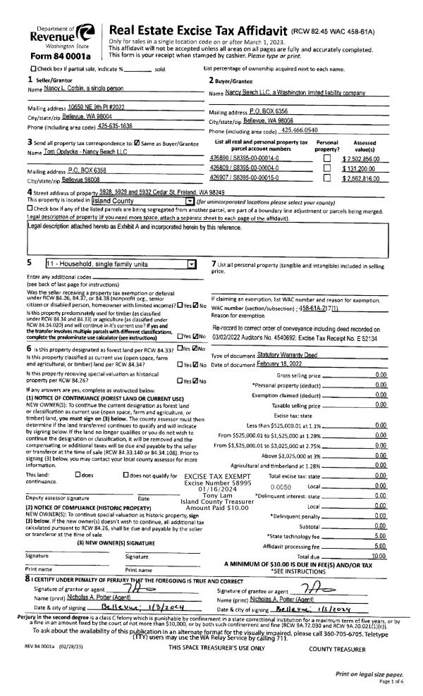 | 1 | 02/18/2022 | WD | Warranty Deed | CORBIN, NANCY L | NANCY BEACH LLC | | | $0.00 | 58995 | 4568524 |