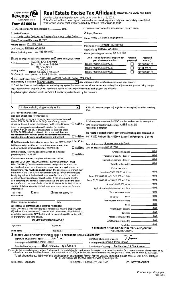 | 6 | 02/18/2022 | WD | Warranty Deed | CORBIN, NANCY L | NANCY BEACH LLC | | | $0.00 | 52134 | 4540692 |