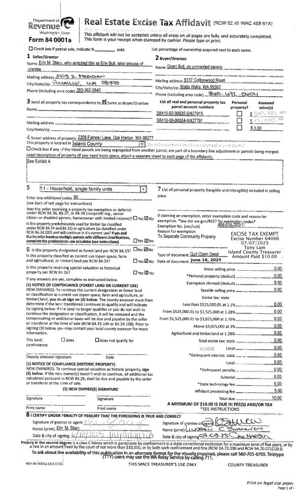 | 2 | 06/18/2025 | QCD | Quit Claim Deed | STACY, ERIN M | BULL, GRANT LYLE | | | $0.00 | 64066 | 4587860 |