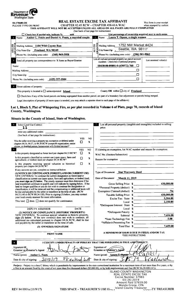 | 1 | 04/16/2019 | WD | Warranty Deed | FOUTS, DANIEL A | OPSON, LAURA T | | | $430,000.00 | 37983 | 4461019 |