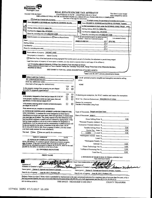 | 3 | 06/26/2017 | BARGSLD | Bargain And Sale Deed | SCHWAB, DELMAR G | SCHWAB TRUSTEE, DELMAR G | | | $0.00 | 30050 | 4425573 |