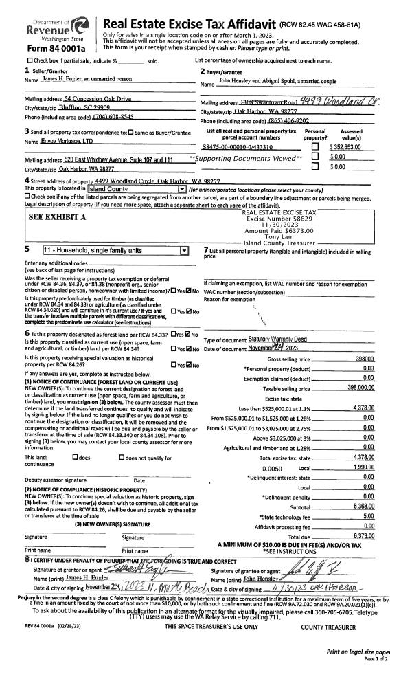 | Mailing Address: | 4499 WOODLAND CIR OAK HARBOR, WA 98277 | % Ownership: | 100.0000000000% |