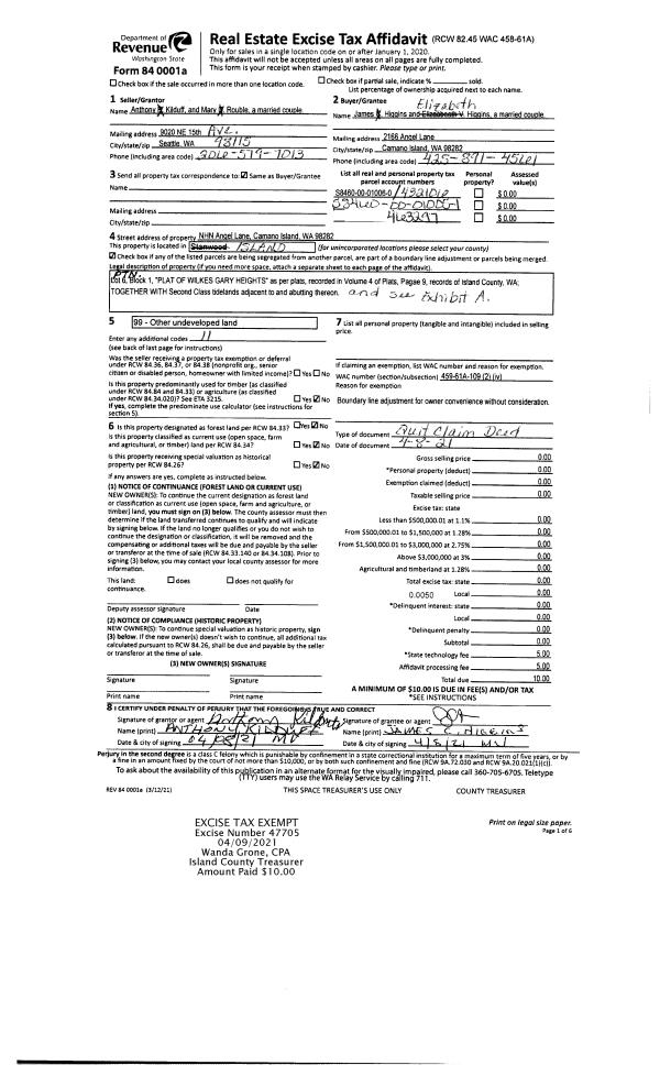 | 2 | 04/08/2021 | QCD | Quit Claim Deed | HIGGINS, JAMES | HIGGINS, JAMES CRAIG | | | $0.00 | 47705 | 4516088 |