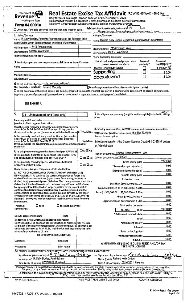 | 2 | 07/16/2021 | PRD | Personal Representatives Deed | DODGE RICHARD | DODGE RICHARD | | | $0.00 | 49205 | 4524603 |