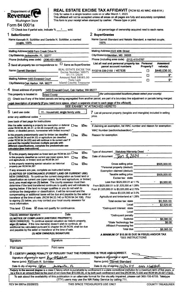 | 2 | 01/08/2024 | WD | Warranty Deed | SCHLITTLER, KENNETH R | STANDARD, GARRETT | | | $505,000.00 | 58975 | 4568434 |