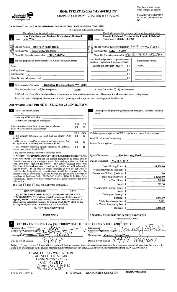 | 1 | 03/07/2017 | WD | Warranty Deed | JACOBSON, JAY T | DEBORD TRUSTEE, CONNIE J | | | $58,500.00 | 28395 | 4418671 |
