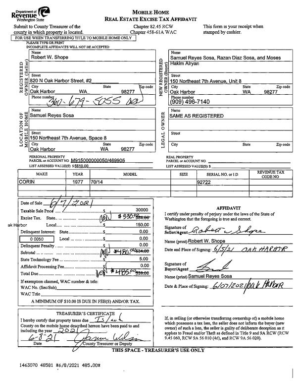 | 2 | 06/07/2021 | MANHOME | Manufactured Home | SHOPE, ROBERT W | SOSA, SAMUEL REYES | | | $30,000.00 | 48581 | |