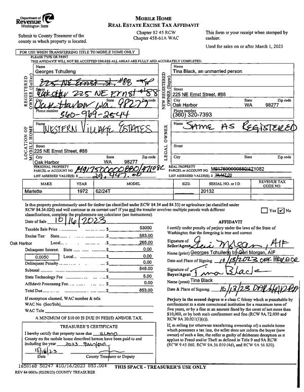 | 1 | 10/16/2023 | MANHOME | Manufactured Home | TCHUILENG, GEORGES | BLACK, TINA | | | $53,000.00 | 58247 | |