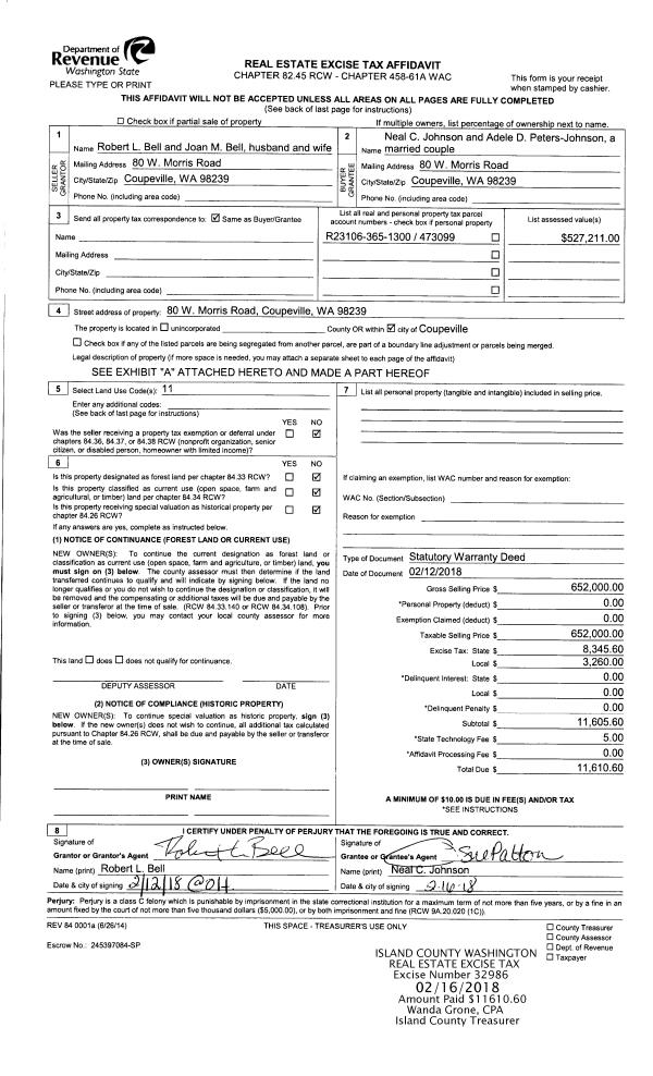 | Mailing Address: | ADELE D PETERS-JOHNSON 80 E MORRIS RD COUPEVILLE, WA 98239 | % Ownership: | 100.0000000000% |