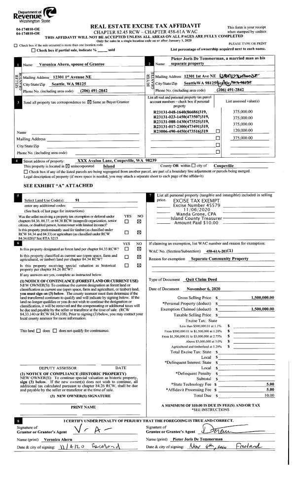 | 1 | 11/06/2020 | QCD | Quit Claim Deed | DE TEMMERMAN, PIETER JORIS | DE TEMMERMAN, PIETER JORIS | | | $0.00 | 45579 | 4501634 |