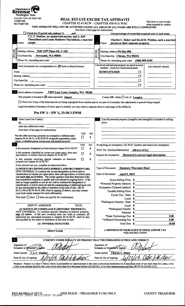| Tax Area: | 719 - APPRAISER-S Whid Schl Dist, outside Langley, vacant & 50 acres or less | Land Use Code | 91 |