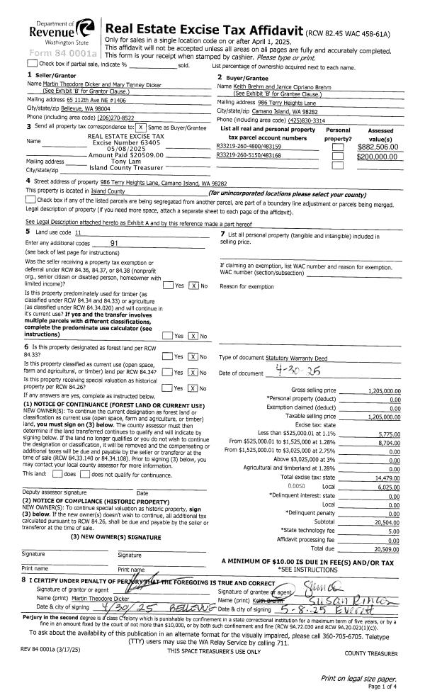 | 1 | 04/30/2025 | WD | Warranty Deed | DICKER, MARTIN THEODORE | BREHM, KEITH | | | $1,205,000.00 | 63405 | 4585530 |