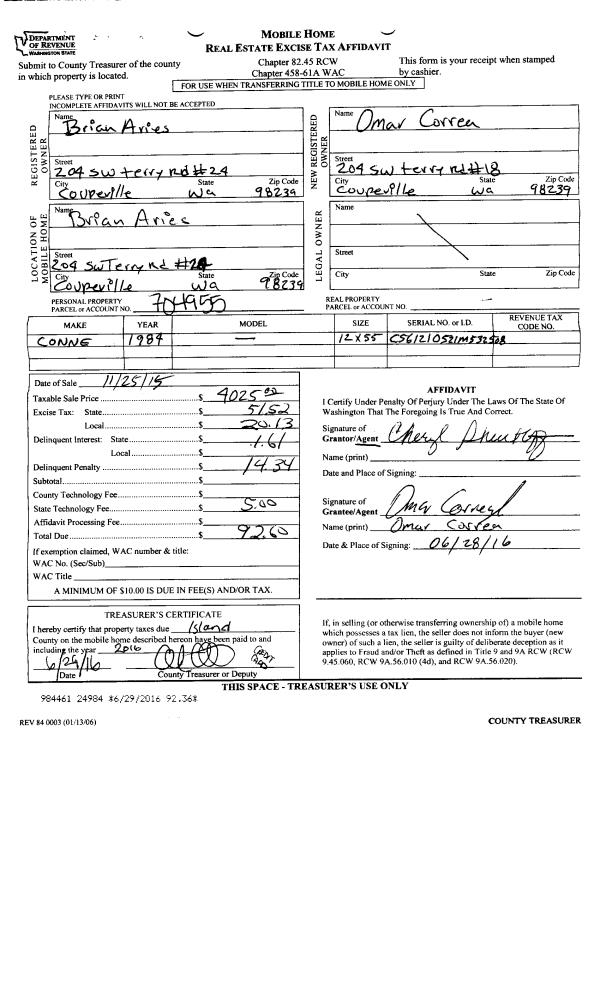| Mailing Address: | 2920 HELLER RD #35 OAK HARBOR, WA 98277 | % Ownership: | 100.0000000000% |