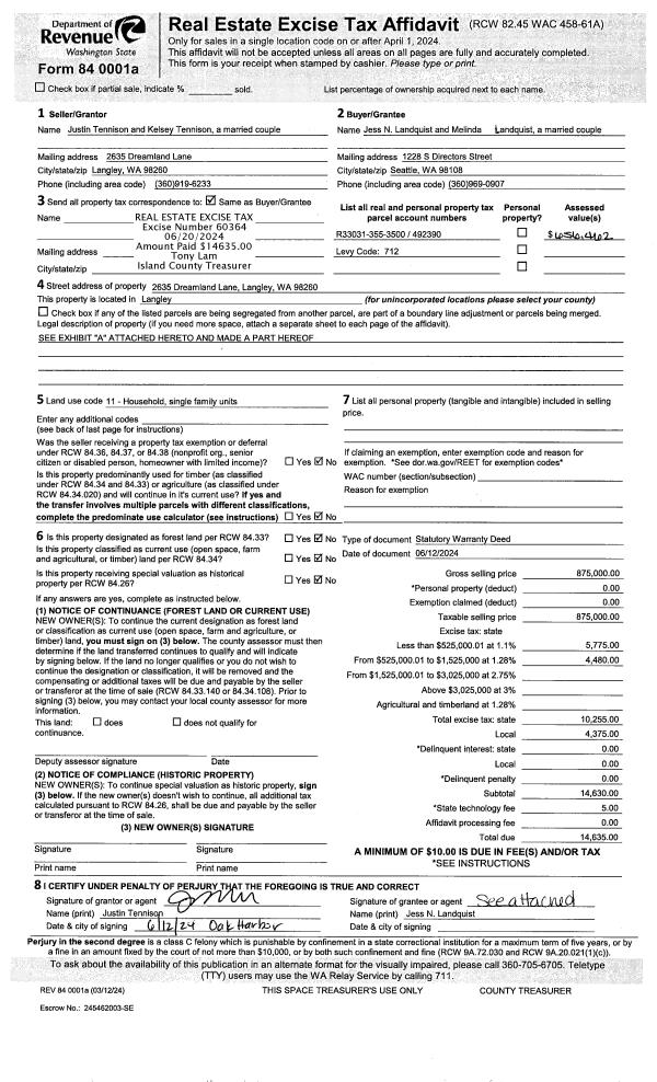 | 1 | 06/12/2024 | WD | Warranty Deed | TENNISON, JUSTIN | LANDQUIST, JESS N | | | $875,000.00 | 60364 | 4573625 |