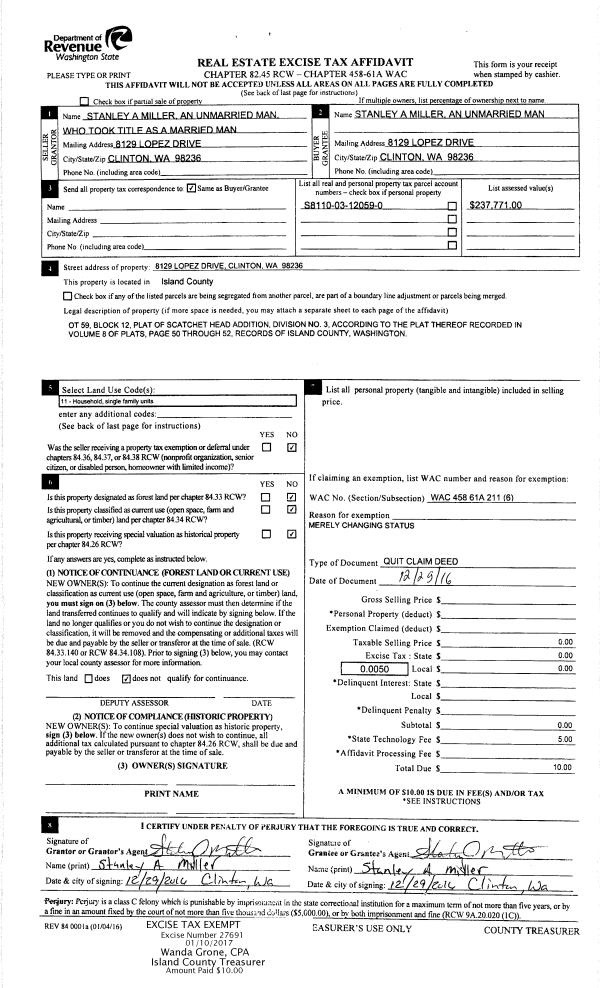 | 4 | 12/01/1996 | QCD | Quit Claim Deed | STARKENBURG, & W | WIERSMA, RONALD P | | | $0.00 | 64560 | 96022094 |