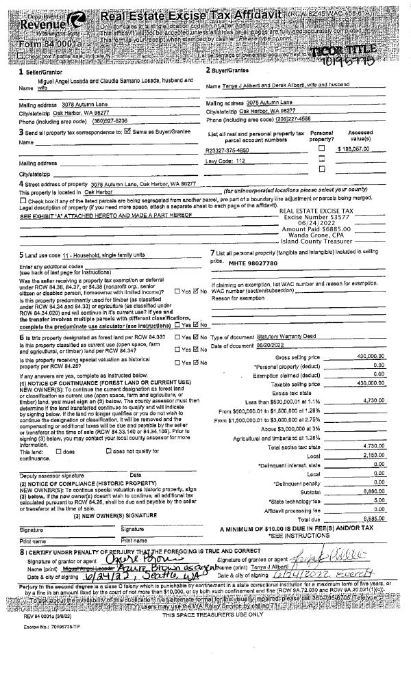 | 1 | 06/20/2022 | WD | Warranty Deed | LOSADA, ANGEL MIGUEL | ALIBERTI, TANYA J. | | | $430,000.00 | 53577 | 4547121 |