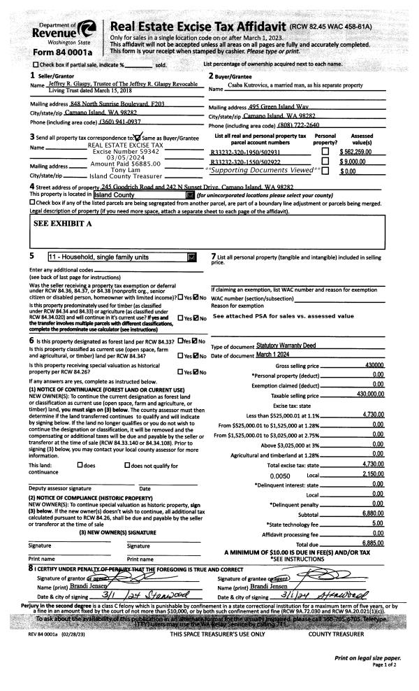 | 2 | 03/01/2024 | WD | Warranty Deed | GLASPY TTEE, JEFFREY R | KUTROVICS, CSABA | | | $430,000.00 | 59342 | 4569974 |