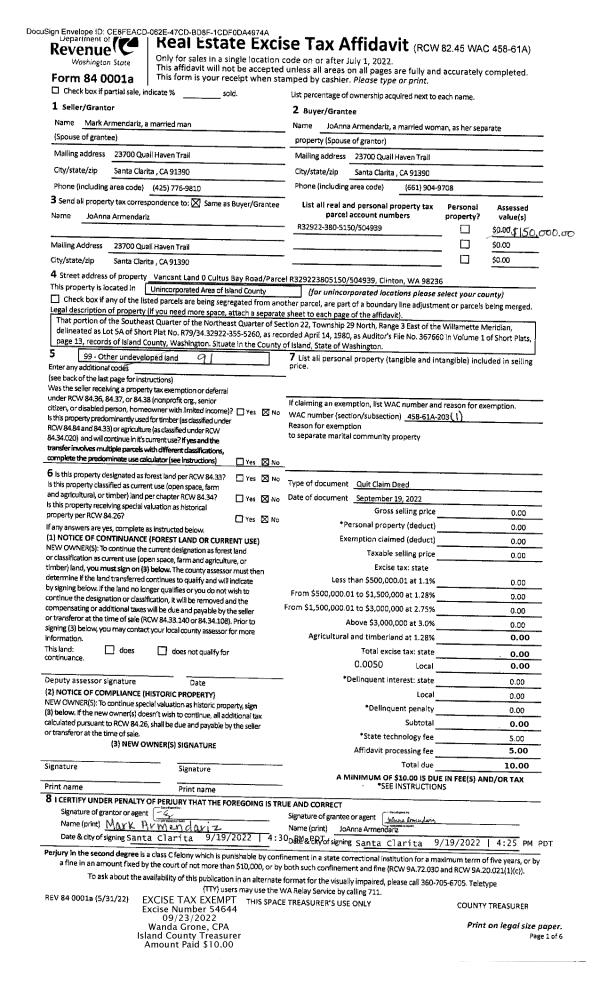 | 1 | 09/19/2022 | QCD | Quit Claim Deed | ARMENDARIZ, MARK | ARMENDARIZ, JOANNA | | | $0.00 | 54644 | 4551629 |