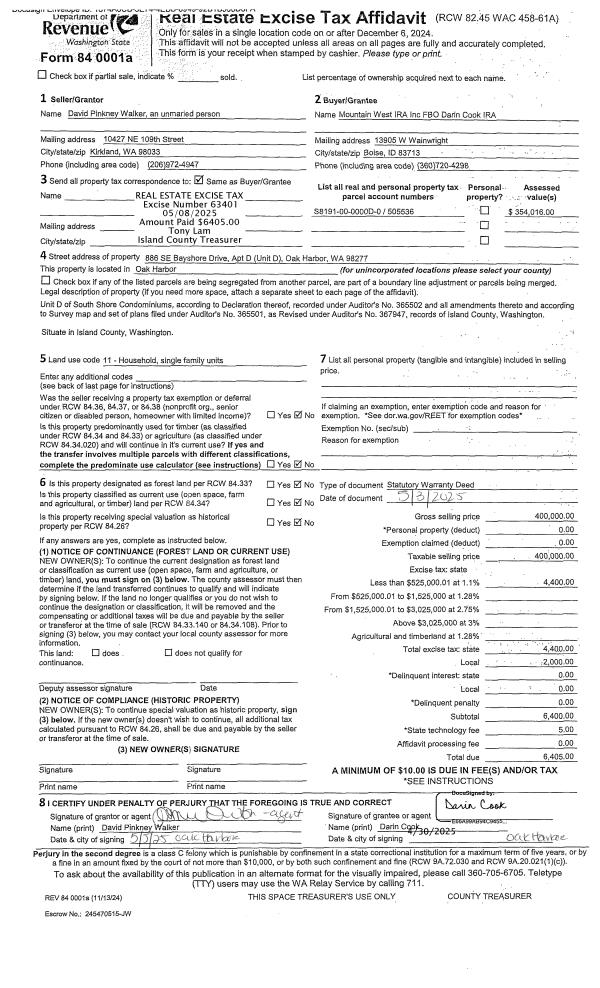 | 1 | 05/03/2025 | WD | Warranty Deed | WALKER, DAVID P | MOUNTAIN WEST IRA INC | | | $400,000.00 | 63401 | 4585517 |