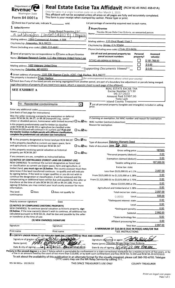 | 1 | 06/26/2023 | WD | Warranty Deed | NUTTER RENTAL PROPERTIES, LLC | ECLEVIA, NICOLAS BRYAN DELA CRUZ | | | $187,000.00 | 57130 | 4561575 |