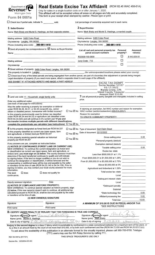 | Mailing Address: | CHRISTINE A KRUSEY 986 MICHAEL WAY CAMANO ISLAND, WA 98282 | % Ownership: | 100.0000000000% |