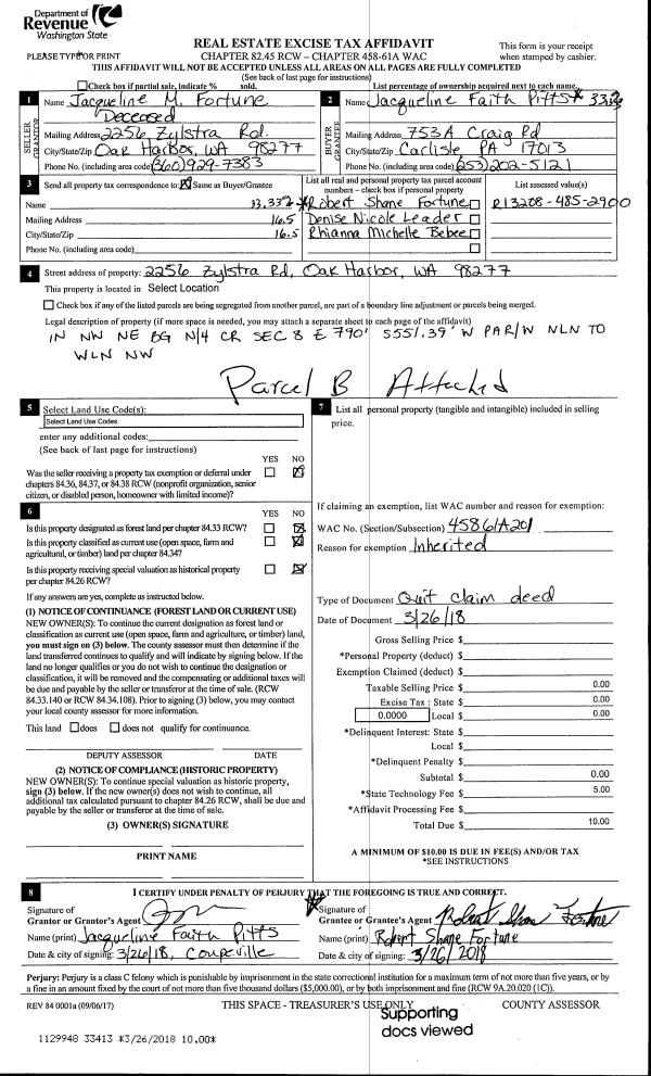 | 2 | 03/26/2018 | QCD | Quit Claim Deed | FORTUNE, JACQUELINE M | PITTS ET AL, JACQUELINE FAITH | | | $0.00 | 33413 | 4441405 |
