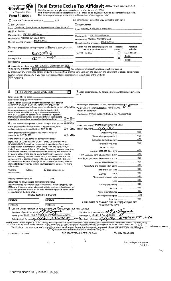 | 1 | 11/01/2021 | PRD | Personal Representatives Deed | VIGUERS, GEOFFREY A | VIGUERS, GEOFFREY A | | | $0.00 | 50832 | 4533508 |