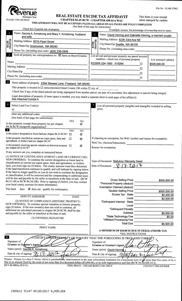 | 2 | 08/17/2017 | WD | Warranty Deed | ARMSTRONG TRUSTEE, DENNIS ARTHUR | HERRING, DAVID | | | $500,000.00 | 31147 | 4430464 |