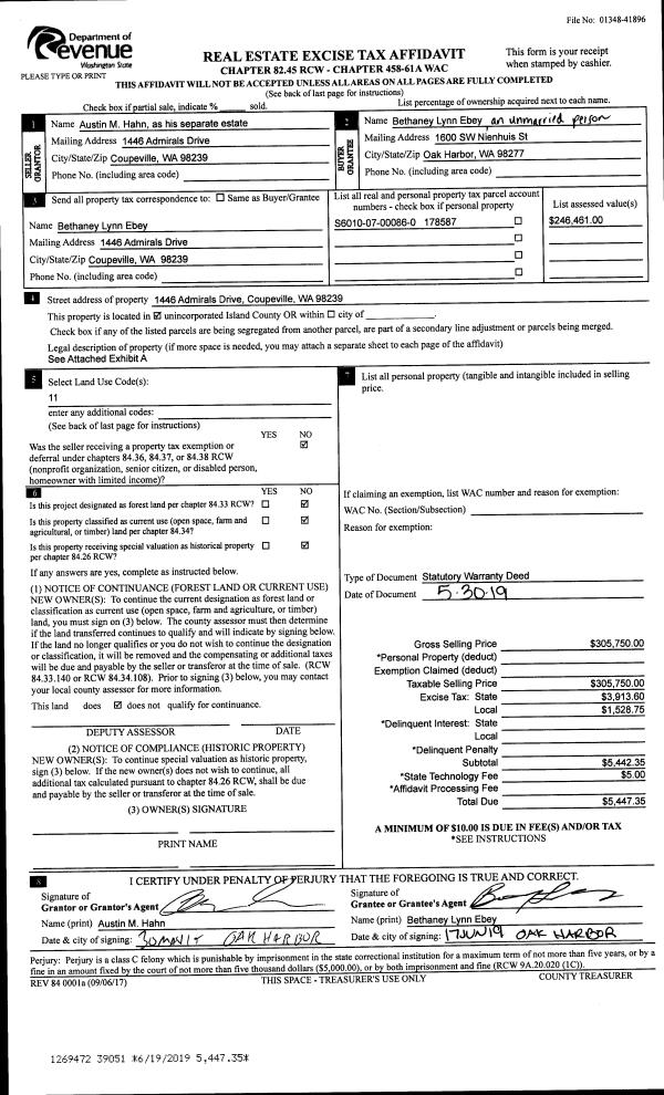 | SWHIDPRMT | P & R S Whidbey GEN | 0.4600000000 | $120,000 | $120,000 | $55.20 | | |
