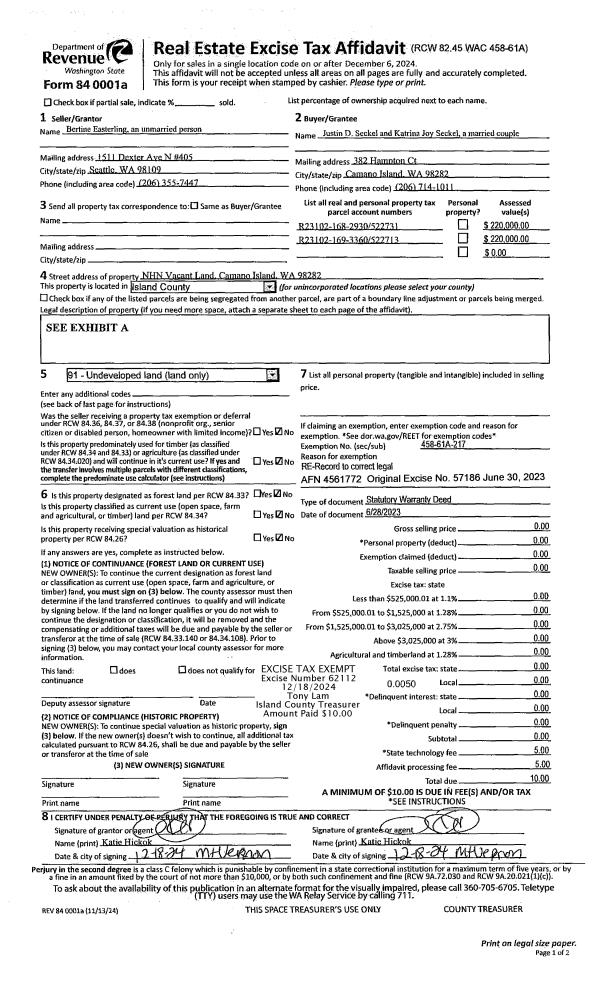 | 1 | 06/28/2023 | WD | Warranty Deed | EASTERLING, BERTINE | SECKEL, JUSTIN DEAN | | | $0.00 | 62112 | 4580500 |