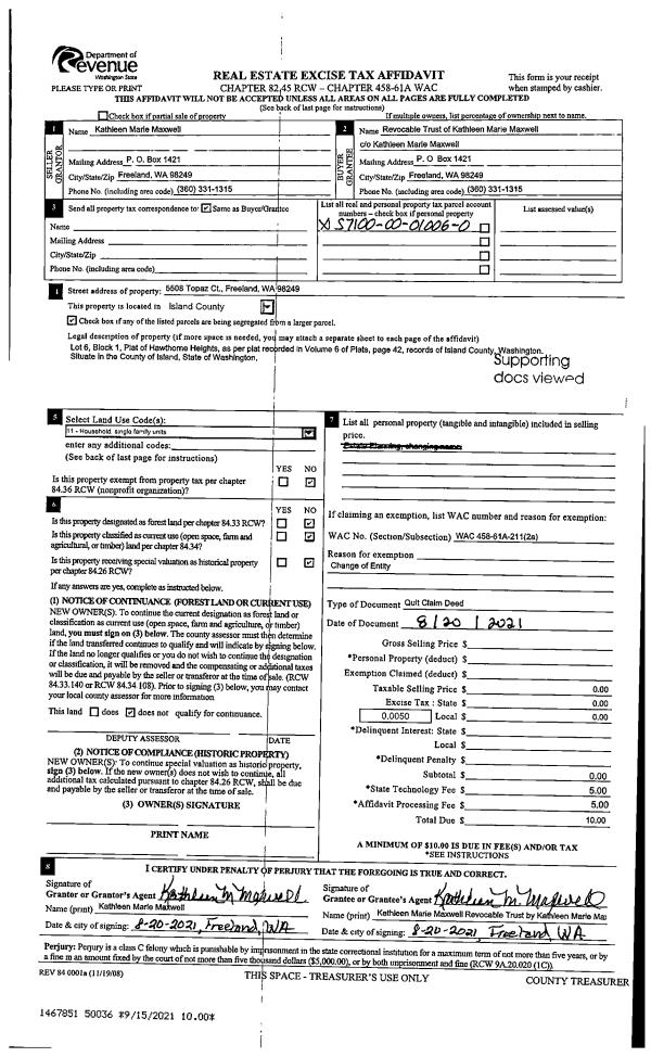 | Mailing Address: | JAYMI M LEE 39 ARAPAHO PLACE CAMANO ISLAND, WA 98282-7680 | % Ownership: | 100.0000000000% |