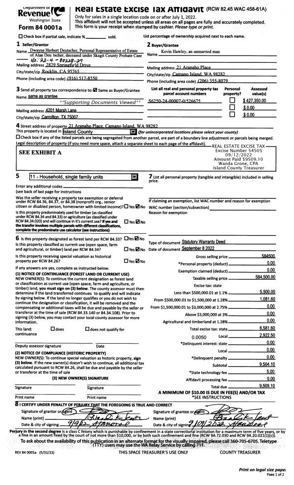 | 1 | 09/08/2022 | WD | Warranty Deed | DEUTSCHER, AL | HAWLEY, KEVIN | | | $584,500.00 | 54505 | 4551066 |