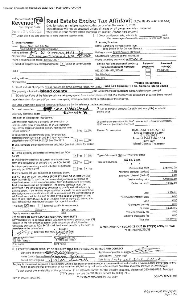 | 1 | 01/10/2025 | WD | Warranty Deed | STACH ET AL, TAUBER | NECH TTEE, AARON | | | $2,450,000.00 | 62294 | 4581189 |