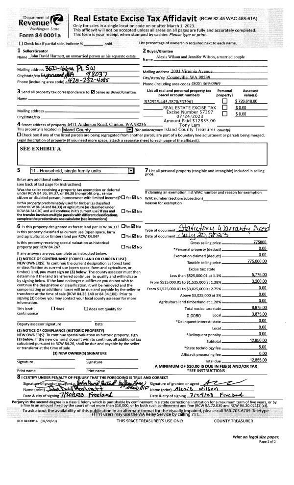 | 1 | 07/20/2023 | WD | Warranty Deed | HARTNETT, JOHN D / GLORIA | WILSON, ALEXIS | | | $775,000.00 | 57397 | 4562576 |