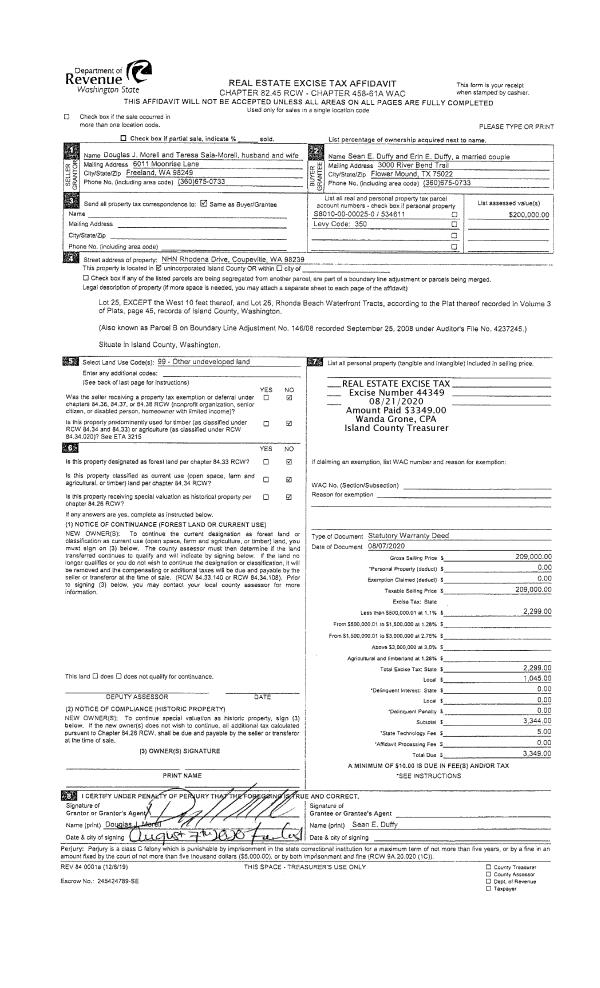 | Mailing Address: | ERIN E DUFFY 1025 CEDAR CIR LANGLEY, WA 98260 | % Ownership: | 100.0000000000% |