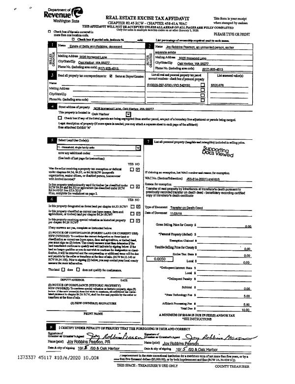 | 2 | 11/28/2018 | TOD | Transfer On Death Deed | ROBBINS, BETTY A | PEARSON, JOY ROBBINS | | | $0.00 | 45117 | 4455680 |