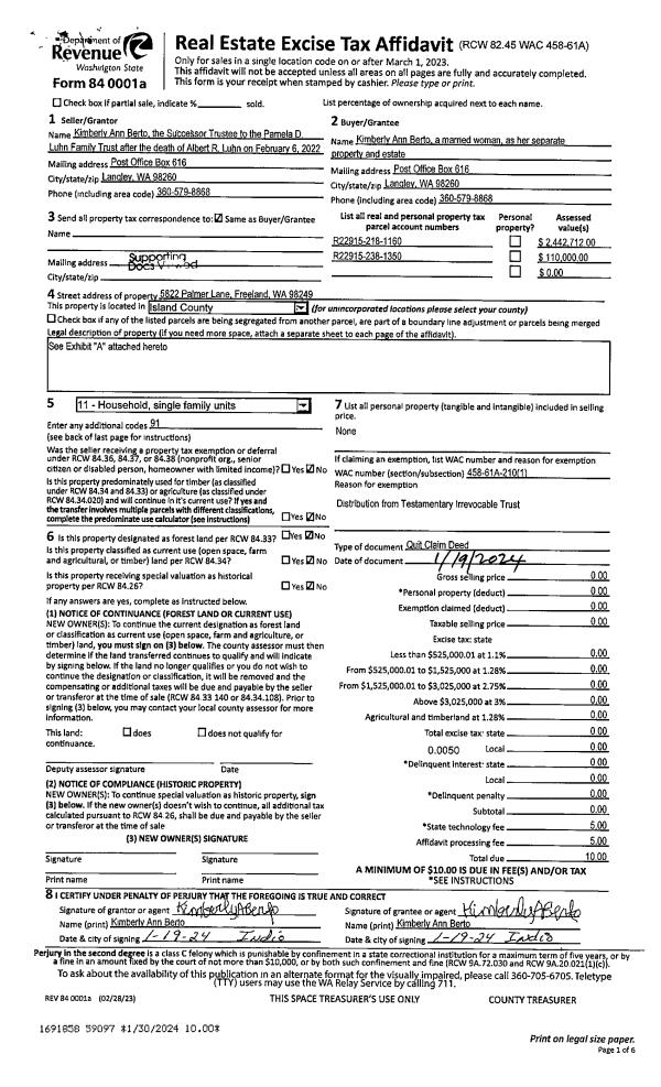 | 2 | 01/19/2024 | PRD | Personal Representatives Deed | LUHN TTEE, ALBERT R | BERTO, KIMBERLY ANN | | | $0.00 | 59097 | 4568963 |