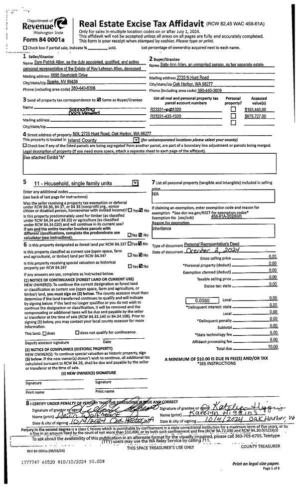 | 1 | 10/02/2024 | PRD | Personal Representatives Deed | ALLEN, ROY L | ALLEN, SALLY ANN | | | $0.00 | 61520 | 4578070 |