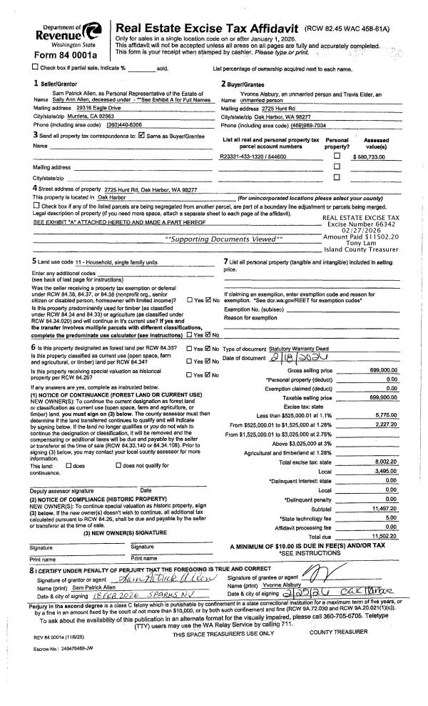 | Mailing Address: | 2725 N HUNT RD OAK HARBOR, WA 98277 | % Ownership: | 100.0000000000% |